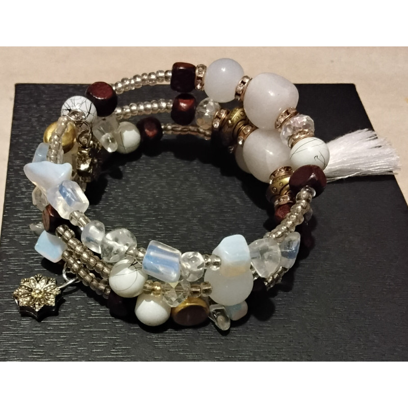 Apyrankė su natūraliais akmenėliais “Stone“, balta 199