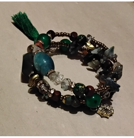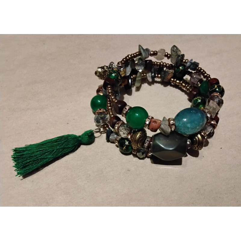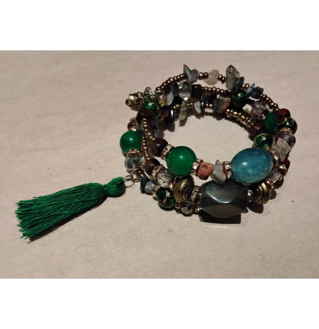 Apyrankė su natūraliais akmenėliais “Stone“, tamsiai žalia 204