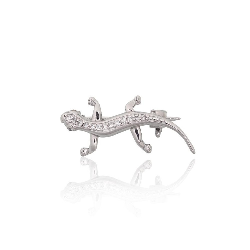 Sidabrinė sagė 2920233(PRh-Gr)_CZ, Sidabras 925°, rodis (padengti), Cirkonai