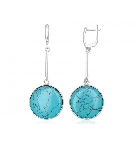 Sidabriniai auskarai ant cilindrinės spynos 2203783_TRX, Sidabras 925°, Turkis (Imitacija)