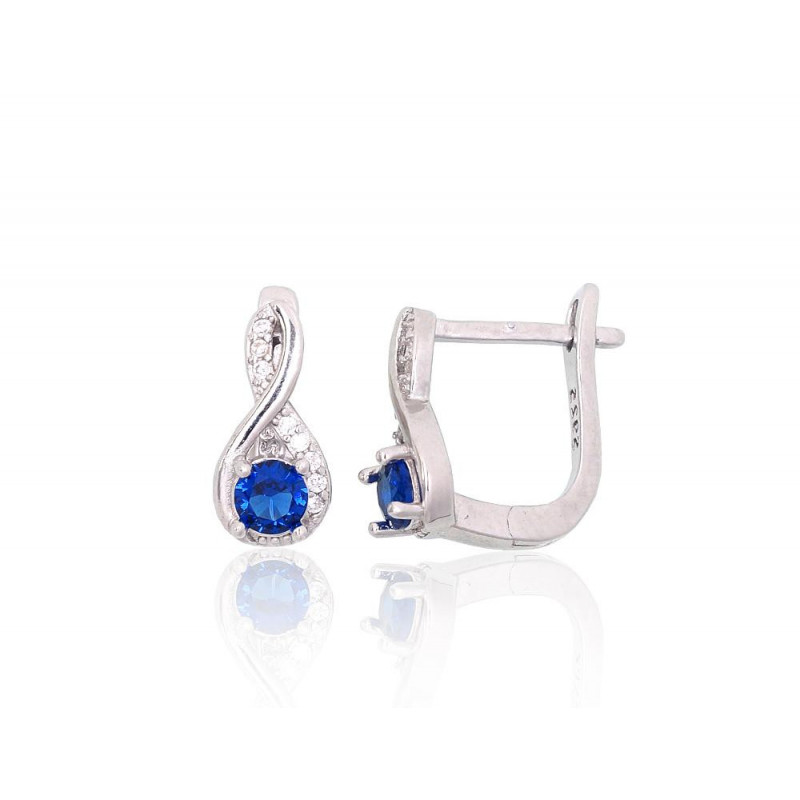 Sidabriniai auskarai ant cilindrinės spynos 2204106(PRh-Gr)_CZ+CZ-B, Sidabras 925°, rodis (padengti), Cirkonai