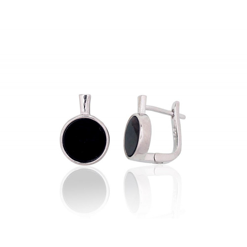Sidabriniai auskarai ant cilindrinės spynos 2204110(PRh-Gr)_ON, Sidabras 925°, rodis (padengti), Oniksas