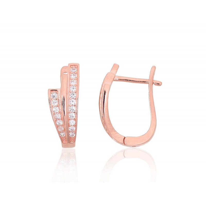 Sidabriniai auskarai ant cilindrinės spynos 2204128(PAu-R)_CZ, Sidabras 925°, raudonas auksas (padengti), Cirkonai