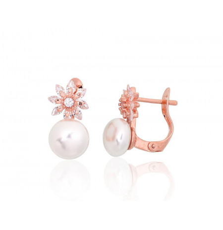 Sidabriniai auskarai ant cilindrinės spynos 2204152(PAu-R)_CZ+PE, Sidabras 925°, raudonas auksas (padengti), Cirkonai ,