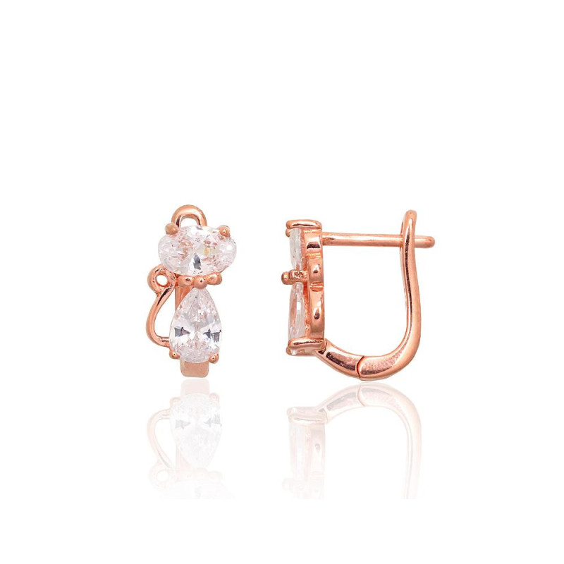 Sidabriniai auskarai ant cilindrinės spynos 2204287(PAu-R)_CZ, Sidabras 925°, raudonas auksas (padengti), Cirkonai