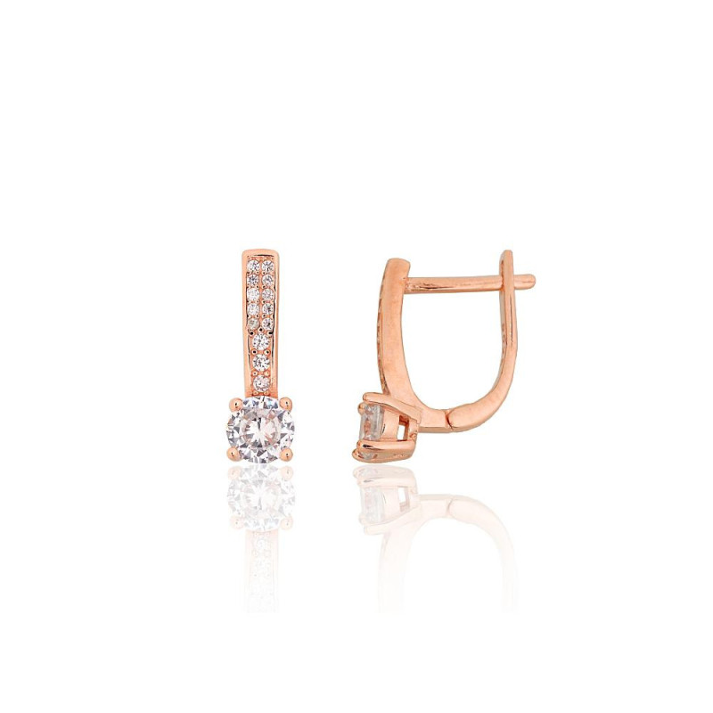 Sidabriniai auskarai ant cilindrinės spynos 2204309(PAu-R)_CZ, Sidabras 925°, raudonas auksas (padengti), Cirkonai