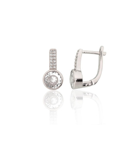 Sidabriniai auskarai ant cilindrinės spynos 2204310(PRh-Gr)_CZ, Sidabras 925°, rodis (padengti), Cirkonai