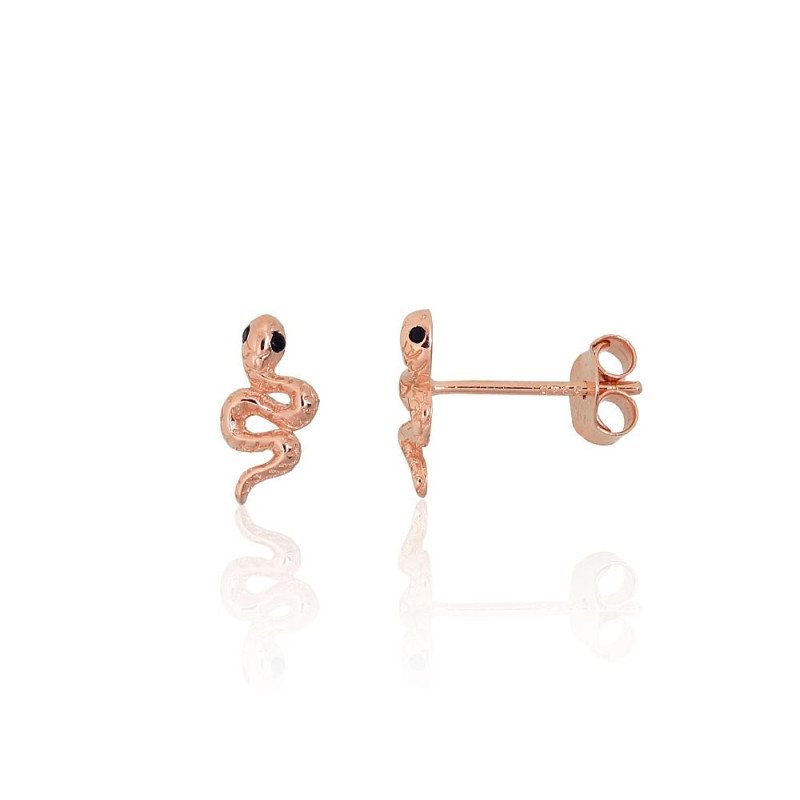 Sidabriniai auskarai –pusetai 2204291(PAu-R)_CZ-BK, Sidabras 925°, raudonas auksas (padengti), Cirkonai