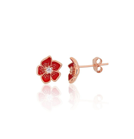 Sidabriniai auskarai –pusetai 2204298(PAu-R)_CZ+ML-R, Sidabras 925°, raudonas auksas (padengti), Cirkonai , Juvelyrinė