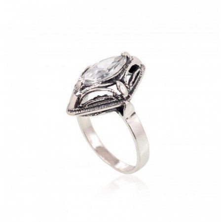 Sidabrinis žiedas 2101413(POx-Bk)_CZ, Sidabras 925°, oksidas (padengti), Cirkonai